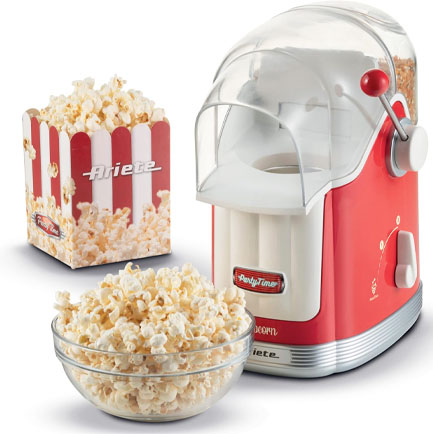 Ariete se ha posicionado como una de las marcas preferidas por los que buscan máquinas de palomitas funcionales, con estilo y fáciles de usar. Su variedad de modelos, tanto con sistema de aire caliente como con opción de aceite, nos permiten elegir el formato que mejor se adapta a nuestros gustos.